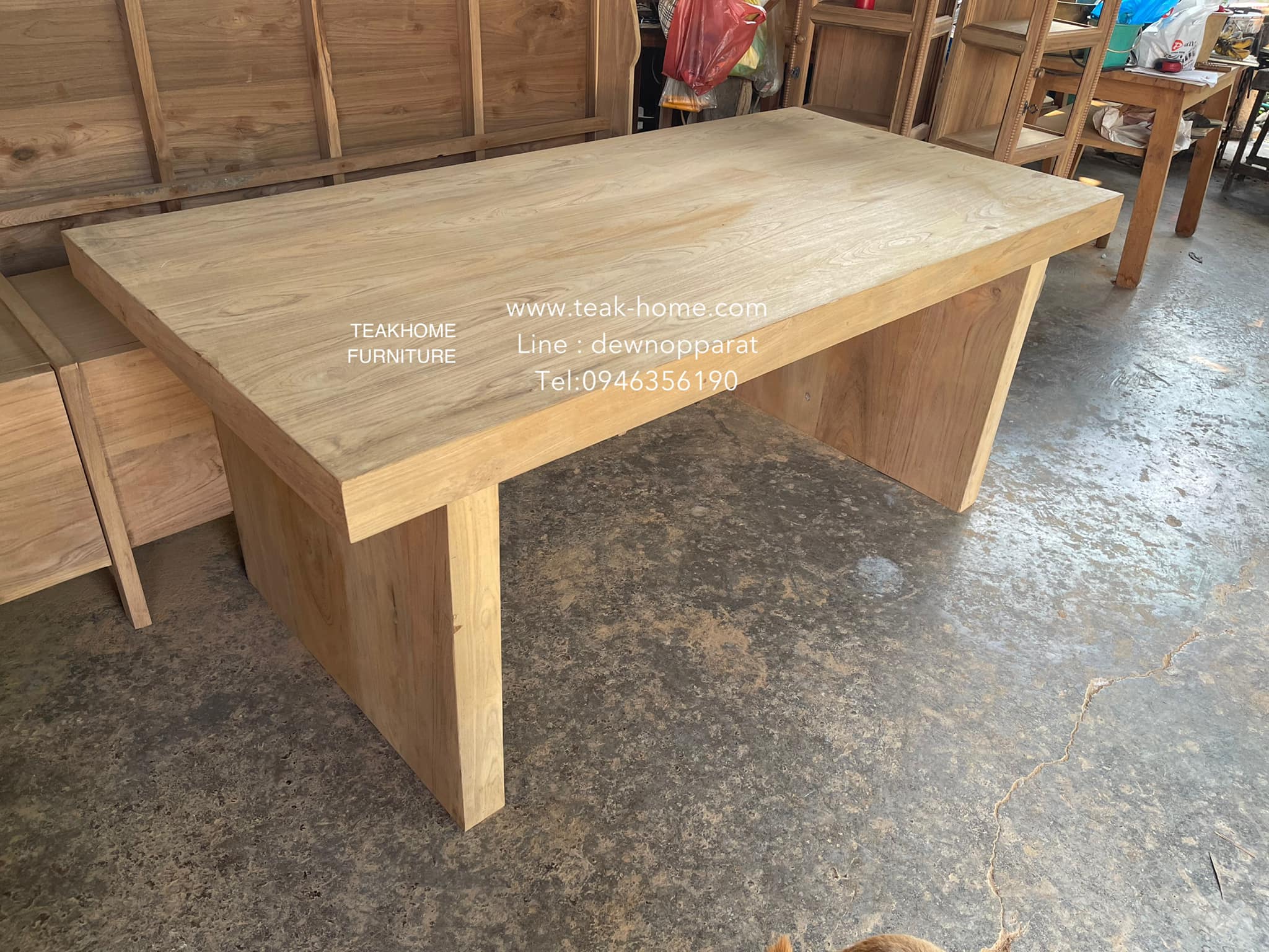 โต๊ะรับประทานอาหารทำจากไม้สักเก่า ตัวโต๊ะเป็นแบบประกบโครงสร้างให้ดูเหมือนไม้หนา 3 นิ้ว ขนาดของโต๊ะ 100*200*75 เซนติเมตร