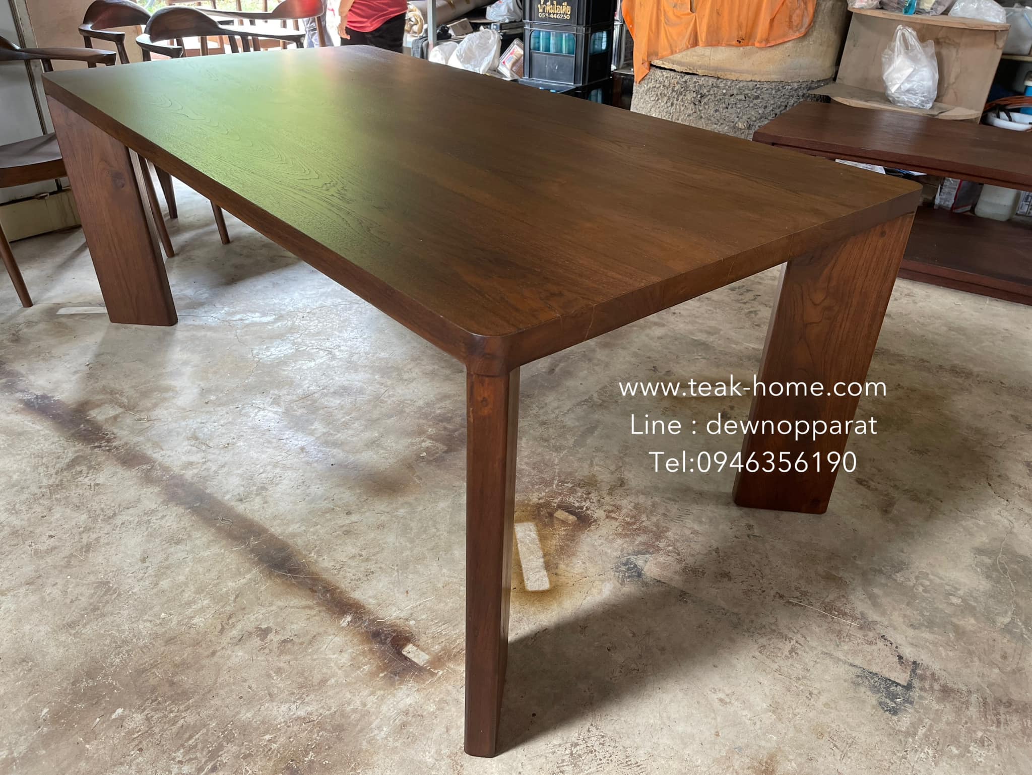 โต๊ะรับประทานอาหารทำจากไม้สักเก่า ขนาดของโต๊ะ 100*200*75 เซนติเมตร ท็อปโต๊ะหนา 4 เซนติเมตร และขาหนา 4 เซนติเมตร ทำสีด้วยสีโอ๊คอ่อน